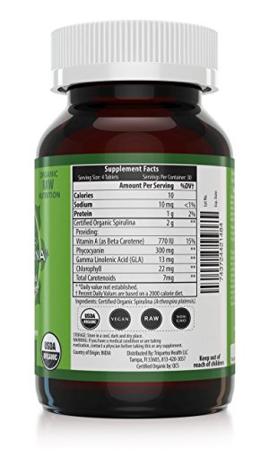 Triquetra HealthÕs organic spirulina is the purest source of spirulina in the world. It is grown following the most rigid organic farming standards in order to provide consumers a source of Spirulina with maximum nutrient density & bioavailability that is free of all possible contaminates. This source of Spirulina has been certified organic by all 4 major organic certifying bodies including USDA, Ecocert, Naturland & OCIA. Our spirulina is grown using 100% plant-based nutrients. Absolutely no chemical fertilizers, animal fertilizers, pesticides or herbicides are used in the cultivation process. It is also 100% free of contaminates including Heavy Metals, Yeast, Mold, E. Coli, BMAA, Microcystine, Pheophorbides, Irradiation, Chemical Treatment, GMO's, Solvents, Binders, Soy & Gelatin.