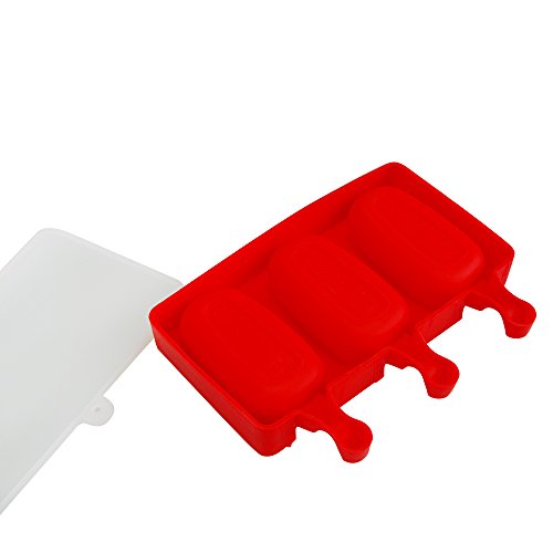 Mirenlife 3 Cavities Silicone Cute Ice Pop Mold with Lid, Ice Cream Bar Mold Popsicle Molds DIY Ice Cream Maker with 20 Wooden Sticks (Oval)