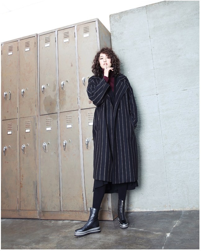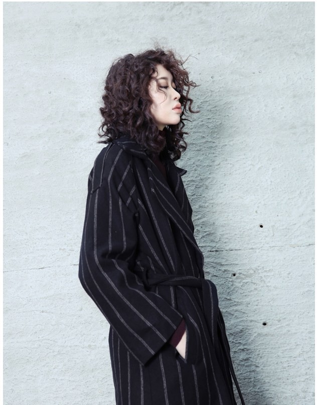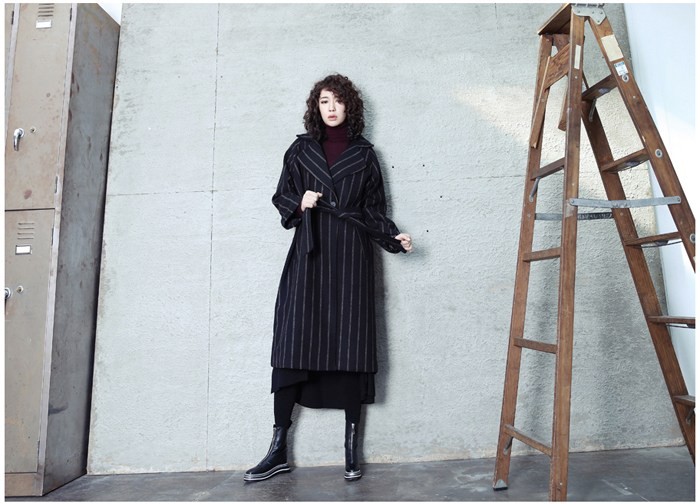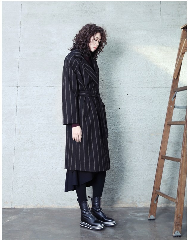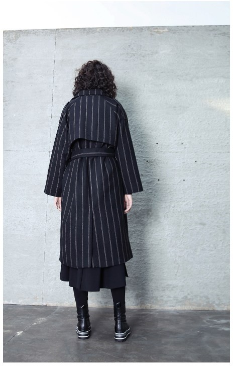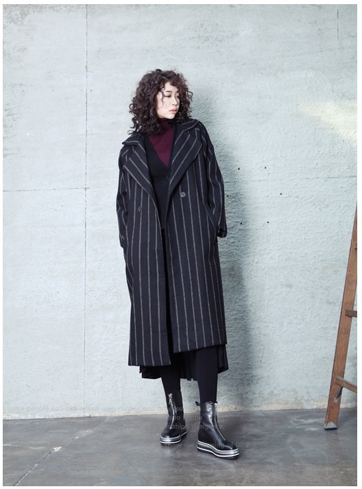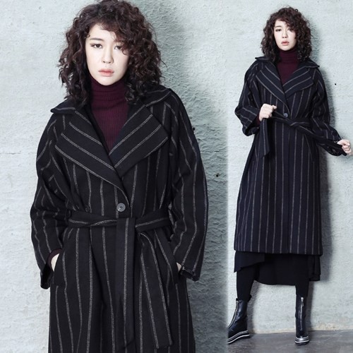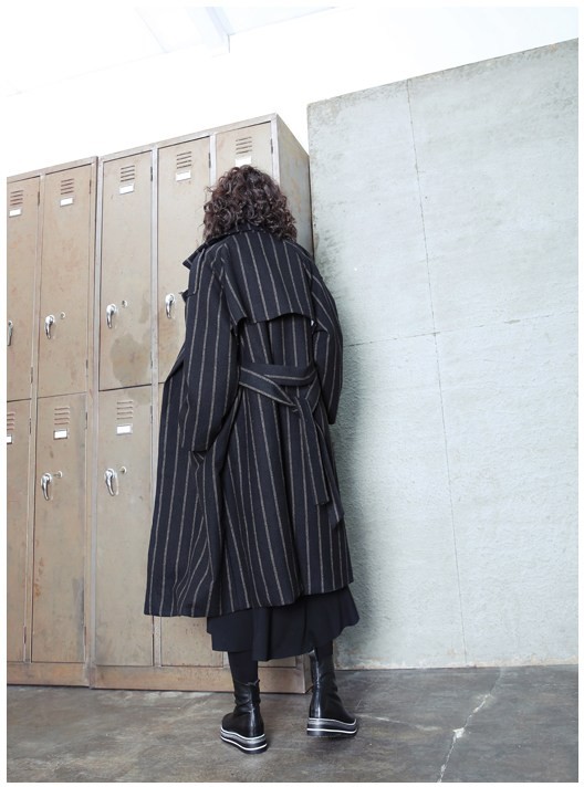 商品名:コート レディース ロング丈 ストライプ 秋冬 2017 モード系 個性的 40代 ファッション
