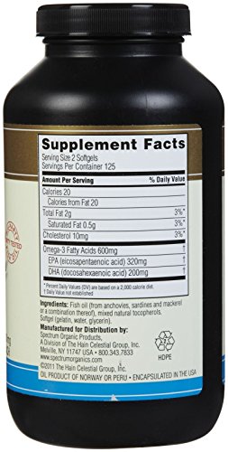 Spectrum Essentials Norwegian Fish Oil Capsules, 1000 mg, 250 ct-250 ct. Serving Size - 2 softgels. The brand name is Spectrum. The country of origin is United States.