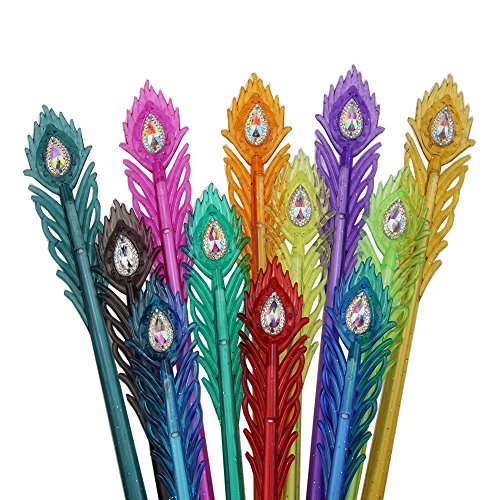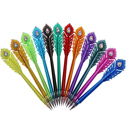 Pshine Creative Delicate Peacock Feather Pattern Colored Gel Ink Pen, Fine Point 0.38mm, Pack of 12