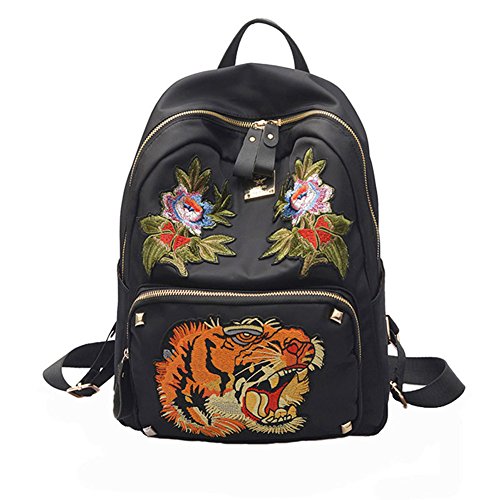 -. Brand : YOURNELO -. Color : black -. Department : womens -. Feature : Fashionable and super cool / Crafted from premium oxford cloth / Size:11.8"L x 6.3"W x 14.2"H / Adjustable shoulder straps for carrying more comfort,zip closure is covered by flap with snap for more security / Package Contents: 1x Backpack(No ornaments included).Due to different measurement methods, please allow 1-3 cm in size deviation and a little color difference due to the light -. Model : hc201705181 -. ProductGroup : Apparel -. ProductTypeName : LUGGAGE -. Size : normal -. Title : YOURNELO Women's Fashion Embroidered Tiger Head School Backpack Bookbag
