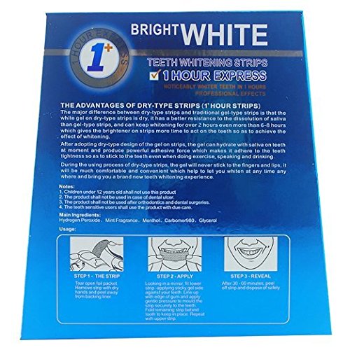 Teeth whitening just got a whole lot easier ... and more affordable!These teeth whitening strips by Sparkling White Smiles have been designed to provide you with the finest whitening results in the comfort of your own home. They contain are easy to adhere to your teeth and stay put throughout your 1 hour whitening session.