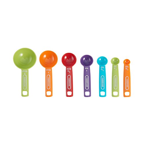 Farberware measuring set Includes 1/8, 1/4-, 1/2-, and 1-tsp and 1/2-, 1-, and 2-tbsp measures, made of plastic