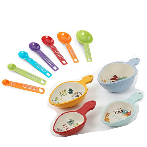 Pioneer Woman Willow Ceramic Measuring Scoop Set With Farberware 7pc Measuring Spoon Set Bundle