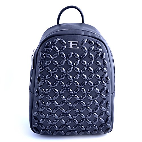 -. Title : Ermanno Scervino woman handbag black leather backpack with applied gemstones.