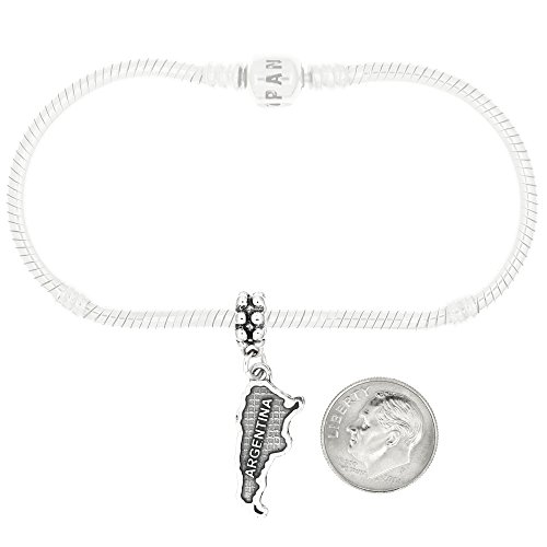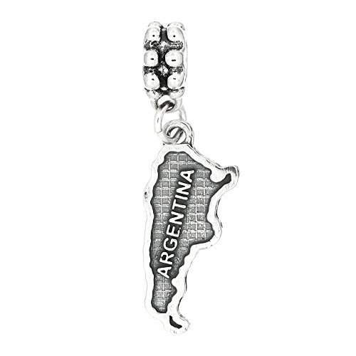 -. Binding : Jewelry -. Brand : Lgu -. Department : womens -. Feature : Oxidized Sterling Silver Antique Style One Sided Bead / Silver Bead Hole Size Approximately 5 Millimeters / Compatible with Majority Brand European Bead Bracelets and Necklaces / Approximately 34 imm x 11 mm (1.34 inch x 0.43 inch) / Bead charm weighs approximately 1.9 grams. -. ProductGroup : Jewelry -. ProductTypeName : FASHIONOTHER -. Title : Sterling Silver Country of Argentina Dangle Bead Charm
