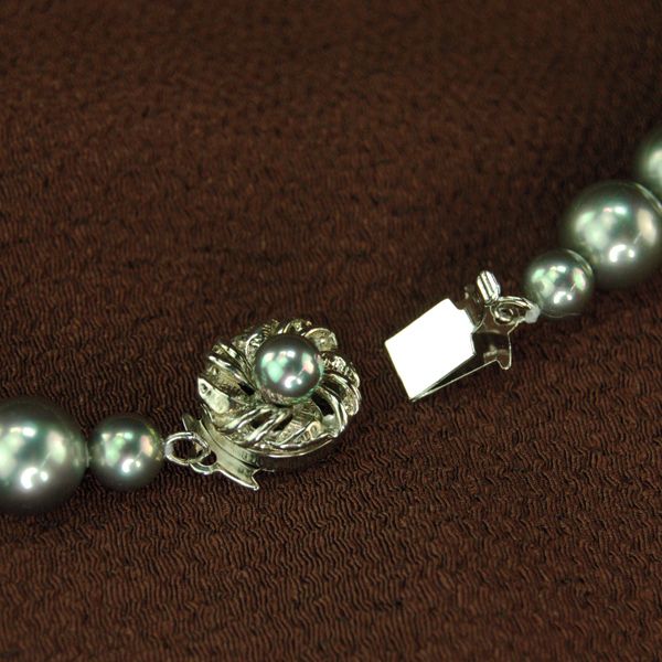 上質のナチュラルブラックカラー本貝パールの大粒9mm玉を使用したネックレスです。