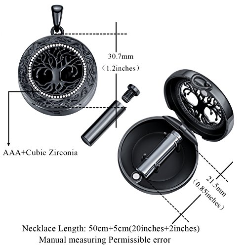 -. Title : Tree of Life Cremation Jewelry, " Always in My Heart " Carved Keepsake Memorial Urn Locket Necklace, 20"