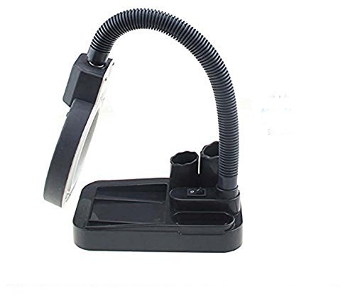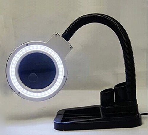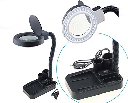 -. Feature : This is a simple and convenient magnifying glass table lamp. It has 40 LED lights, which is not only long life, but also is environmental protection and energy conservation / Apply for electronic engineering, maintenance staff, jewelry appraisal, teacher and student. 100mm magnifying glass lens with hinged dust cover. Magnification 5X & 10X ( inner sopt Magnifier- 25mm Diameter) / Shadowless lamp,reliable light, no flashes, no effect on vision.Electronic start circuit, power-saving and suitable luminosity. Zoom with dual lighting combinations, so you can observe more clearer. 360 degrees adjustment direction , freely adjust the angle and position as you like / Material: High-strength plastic. floor Zoom: 5X & 10X Power:90V-260V 50/60Hz / Upper base is made of hard plastic and durable metal floor, so that is more stable.