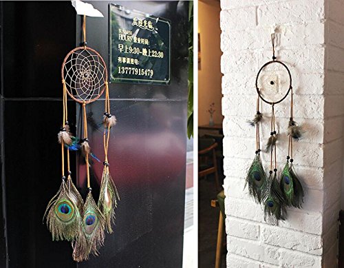 Handmade Dream Catcher Peacock Feather Dreamcatcher Indian Tradition Circular Net For Car Kids Bed Room Wall Hanging Decoration Decor Ornament Craft Gift