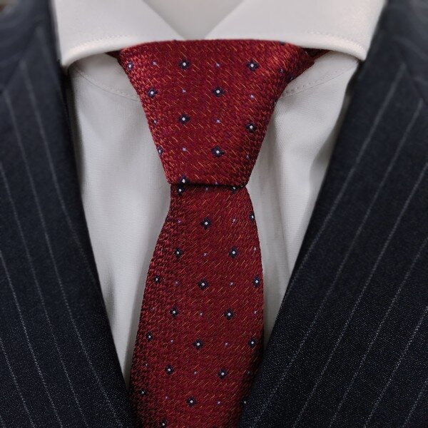 와인바디에 푸른빛 물방울무늬 지퍼넥타이입니다!! 네이비 수트에 포인트로 착용해주시면 아주 이쁩니다^^