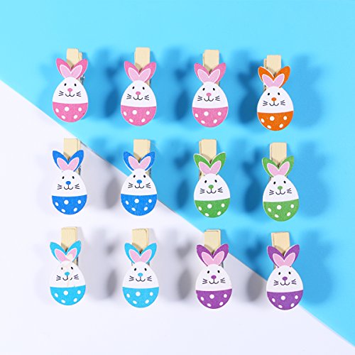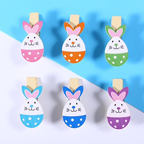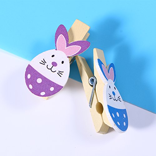 - Cute Easter Bunny Eggs Rabbit Colored Wooden Photo Clip Holder Picture Hanging Clips Clothes Pegs with Jute Twine as Easter Party Supplies Hanging Decoration Ornaments or Easter Party Favors Gifts.