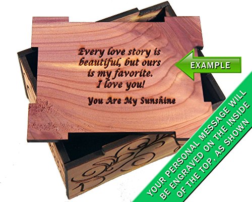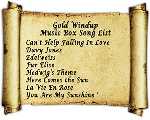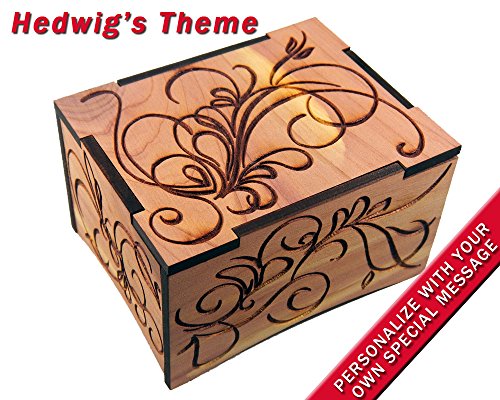 -. Binding : Kitchen -. Brand : The Laser's Edge -. Feature : Personalize with Your Own Special Message! / Ships from Little Rock, Arkansas / Handmade in the USA from Aromatic Red Cedar / High Quality Decorative Keepsake -. IsAutographed : 0 -. Label : The Laser's Edge -. Manufacturer : The Laser's Edge -. PackageQuantity : 1 -. ProductGroup : Home -. ProductTypeName : HOME -. Publisher : The Laser's Edge -. Studio : The Laser's Edge -. Title : Personalizable Windup Aromatic Red Cedar Music Box, "Hedwig's Theme", Laser Engraved, Gold Movement