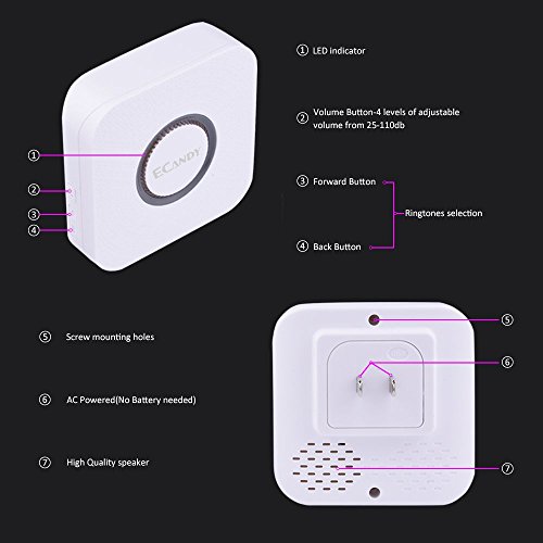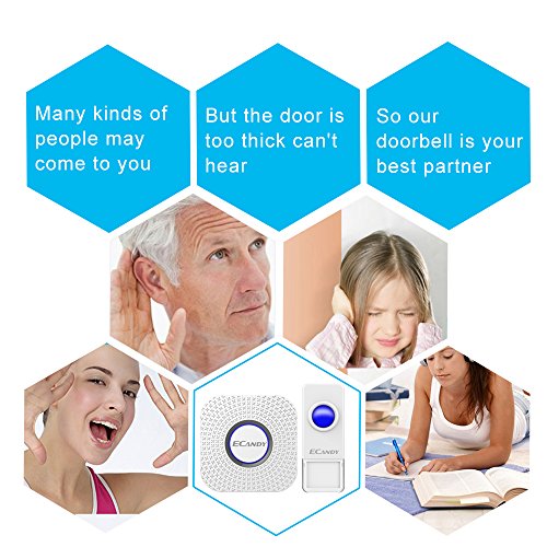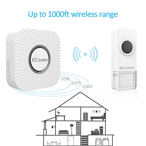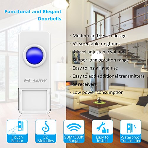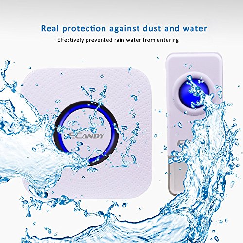 Wireless Doorbell, Ecandy Waterproof Remote Wireless Cordless Doorbell Door Chime Operating at 1000-feet Range with 52 Chimes, No Batteries Required for the Receiver