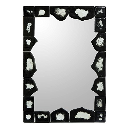 NOVICA Murano Wood and Glass Wall Mounted Mirror, Black And White 'Restless Sea'
