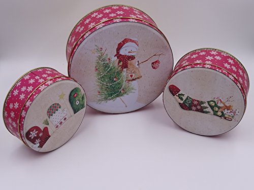 Adorable Christmas Themed Round Storage tins, Shabby chic, set of 3