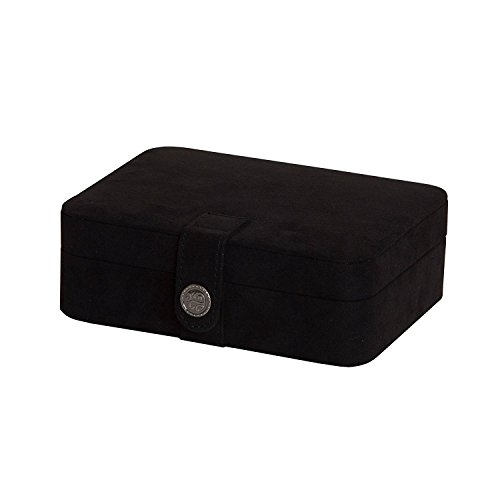 Giana Plush Fabric Jewelry Box/Travel Case with Ivory Suede Lining and Snap Closure (Black)