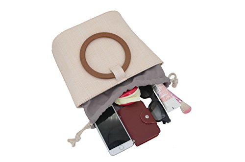 - MATERIALS & COMPONENT: Made of high quality straw; Exquisite straw surface, polyester lining, top drawstring closure, detachable strap, round woody handle.