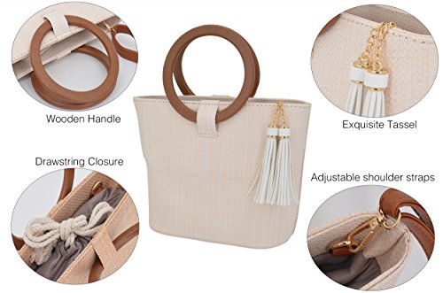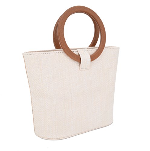 - NEW DESIGN: Made of straw for bag bady & solid wood for handle, Modern Stylish.