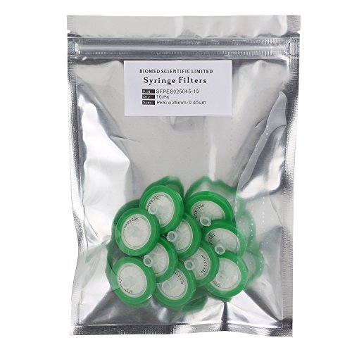 Syringe Filters PES (Polyethersulfone) 25mm Diameter 0.45 um Pore Size Non Sterile Pack of 10