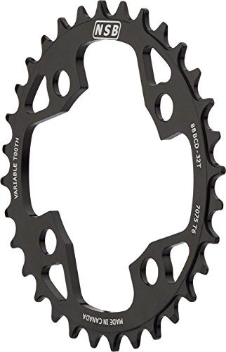 Studio : North Shore Billet Publisher : North Shore Billet Binding : Misc. Product Description North Shore Variable Tooth Billet Chainrings Variable tooth profiling ensures ultimate chain retentionMachined from solid 7075 T6 AluminumAnodized black with laser etched graphics Item SpecificationsColorBlackMaterialAluminumTeeth30Chainring BCD88Defined ColorBlackRing Position/TYPEChain Retaining Single Ring 0
