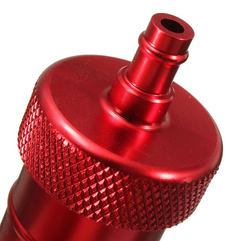Universal billet gas filter for carbureted motorcycle, dirt bike, pit bike, ATV, UTV, out door power equipment, generator or any fuel system using 6mm, 1/4" fuel line.