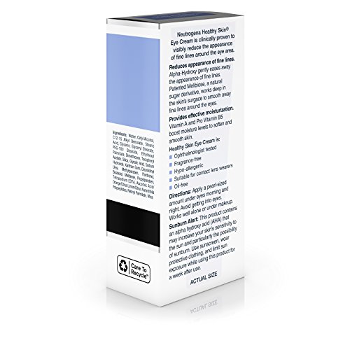 Help improve the signs of aging with Neutrogena Healthy Skin Eye Cream. This ophthalmologist-tested eye cream is clinically proven to visibly help reduce the appearance of fine lines and increase firmness around the eye area. It is formulated with alpha hydroxy acid to help ease away the appearance of fine lines. The hypoallergenic formula contains Vitamin A and Pro-Vitamin B5 to boost moisture levels to soften and smooth skin. Optical light diffusers help diminish the appearance of dark circles, while skin soothers help calm the eye area and reduce puffiness. This fragrance-free eye cream is suitable for contact lens wearers.