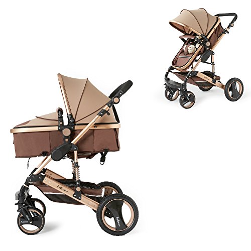 TZ Luxury Newborn Baby Foldable Anti-shock High View Carriage Infant Stroller Pushchair (golden) by Belecoo