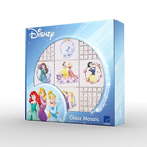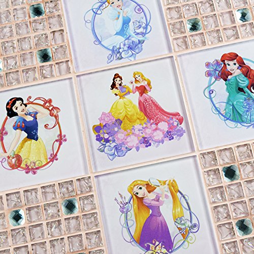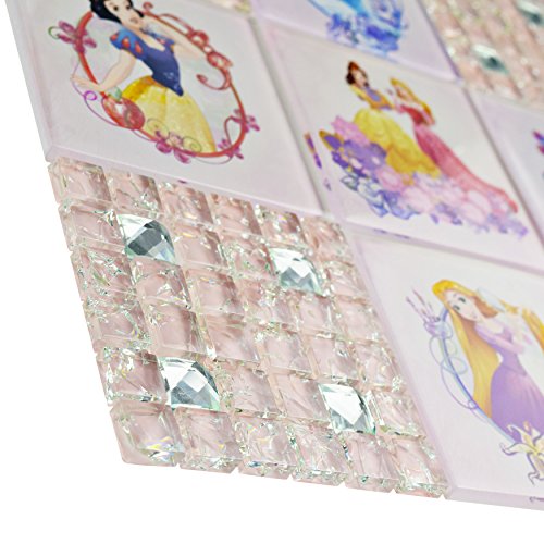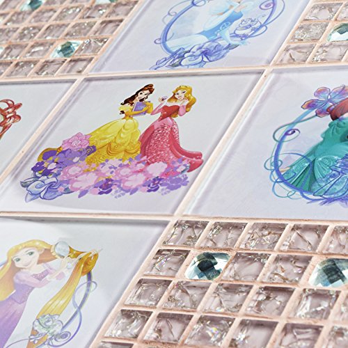 Disney WDSPRS42 Disney WDSPRS42 Princesses Sparkle Glass Mosaic Wall Tile, 11.75" x 11.75", White/Pink/Blue/Purple/Silver/Yellow/Green/Red/Brown