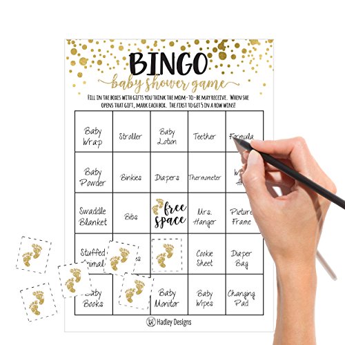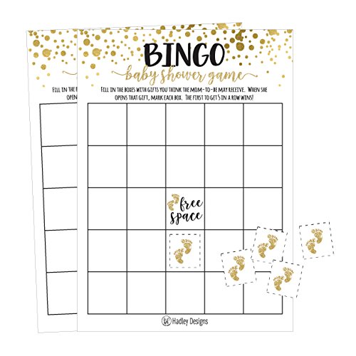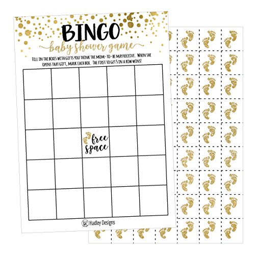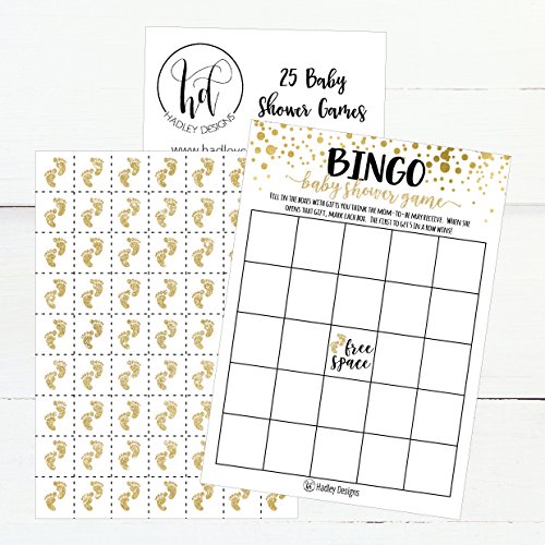 25 Gold Bingo Game Cards For Baby Shower, Bulk Blank Bingo Squares, PLUS 25 Pack of Baby Feet Game Chips, Funny Baby Party Ideas and Supplies For Girl or Boy, Cute Paper Pattern For Kids and Children