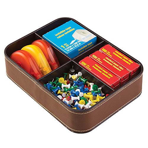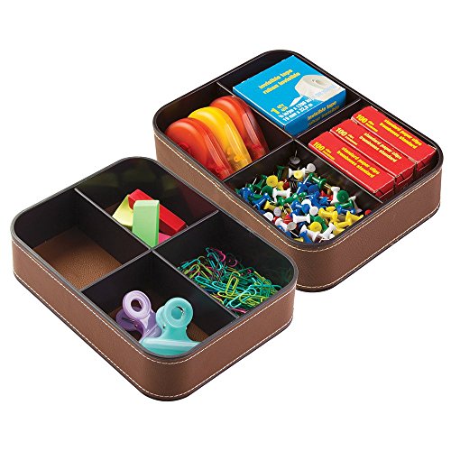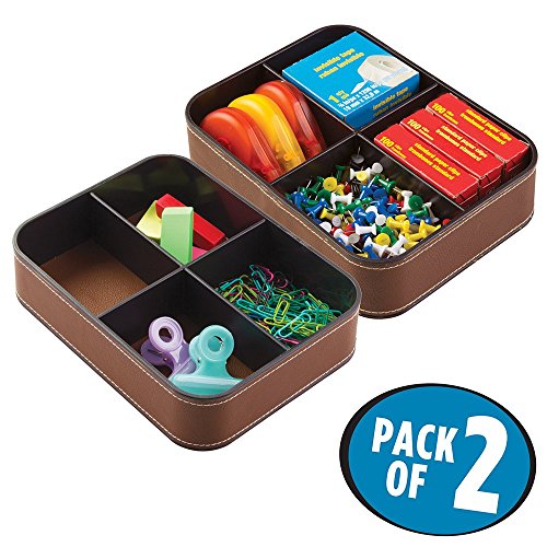 mDesign Office Supplies Desk Organizer Tray for Push Pins, Tape, Staples, Paper Clips - Pack of 2, 4 Compartments, Brown/Dark Brown