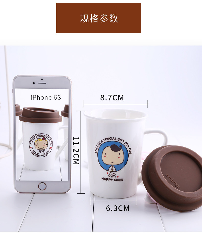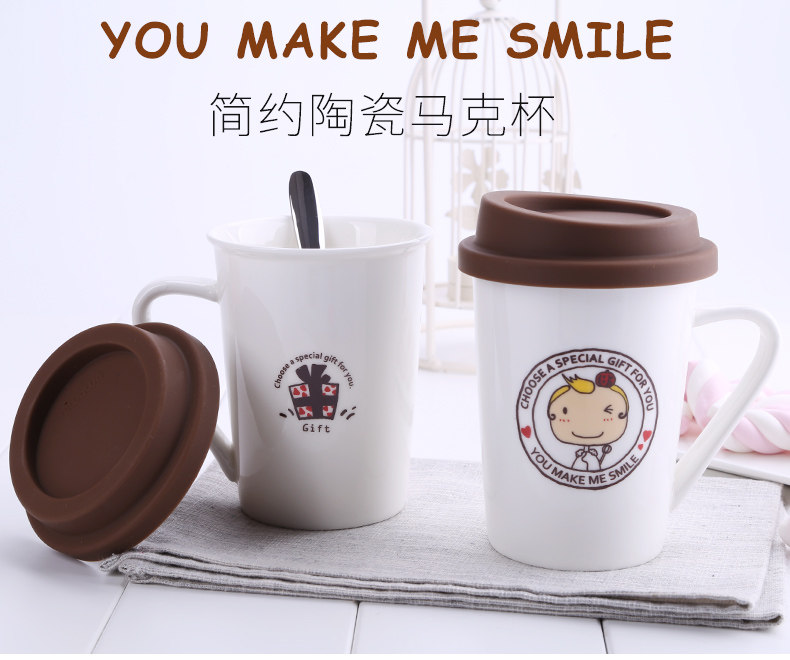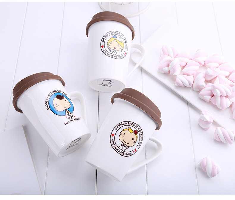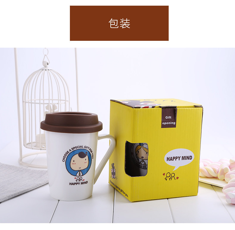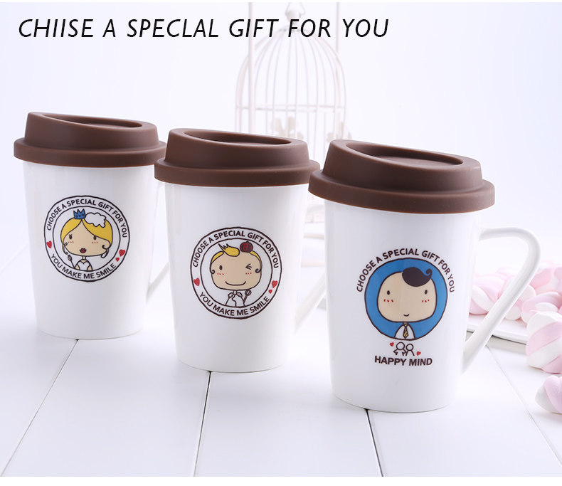 可爱卡通陶瓷杯带盖创意咖啡杯办公室喝水杯马克杯情侣杯子早餐杯