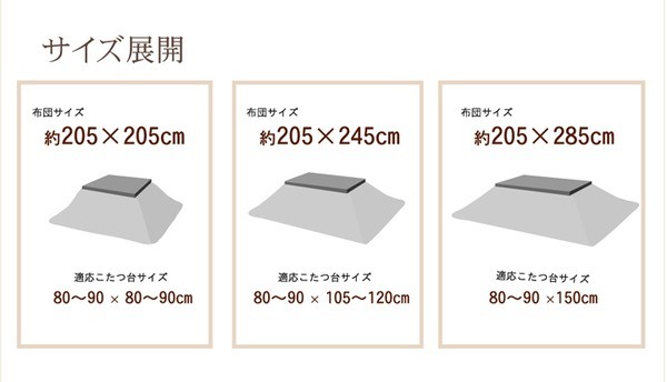 75~80×105~120cm幅のこたつ台に適応