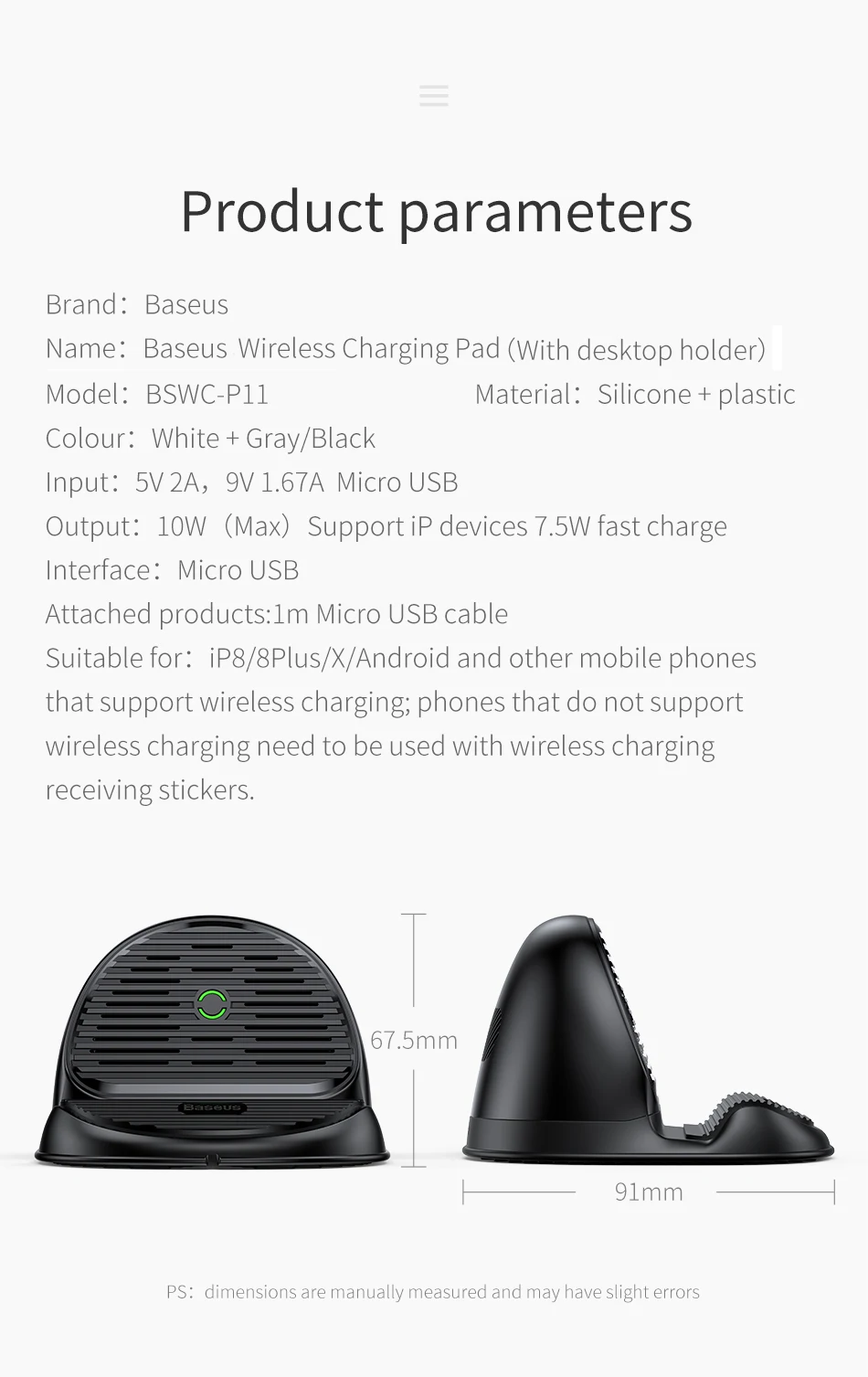 Model Number:Baseus Silicone Qi Wireless Charger Docking Station With Micro Cable