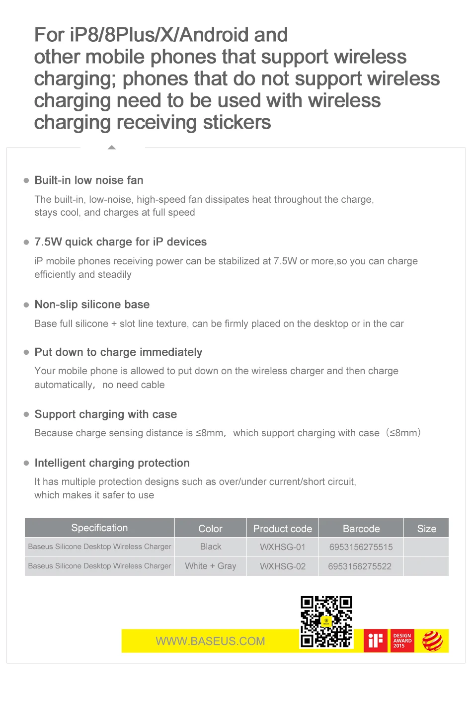 Feature 3:10W(Max) For Andriod Charging, 7.5W(Max) For iPhone Charging