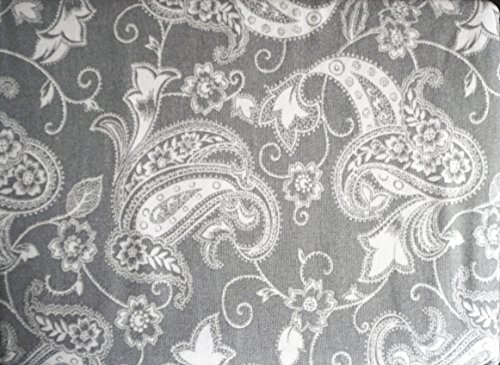 Dormisette 4 Piece King Luxury Cotton Flannel Sheet Set Cream / Off-White Jacobean Floral Paisley Pattern on Medium Gray