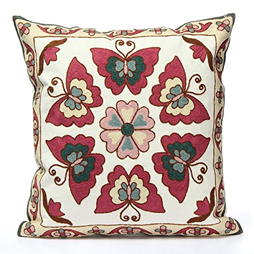 summer clearance Sale Day 2016 Valentoria® Luxury Vintage Embroidered Cushion Cover Throw Pillow Case Decorative Pillowcase Cotton Linen Square Throw Pillow Case Cushion Cover for Sofa Living Room 45cmX45cm (Red Butterfly)