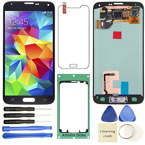LCD Display Screen Replacement + Touch Digitizer Assembly for Samsung Galaxy S5 I9600 G900 G900A G900F G900P G900T G900V G900R4, with Repair tools + screen protector, (Black)