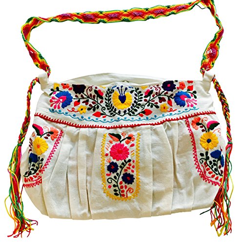 White Hand Embroidered Crossbody Erica Maree Bag With Colorful Handwoven Strap