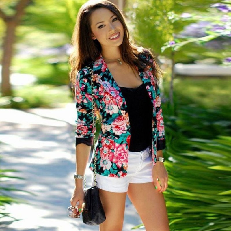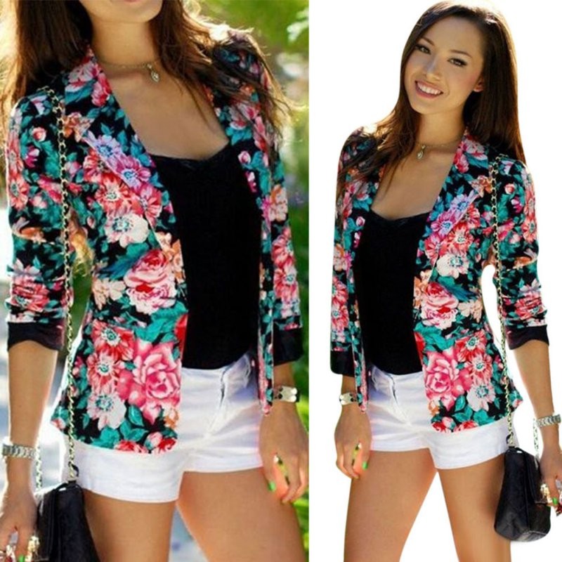 Style: Fashion Women Long Sleeve Slim Floral Blazer