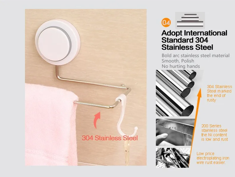 BEEGAGA Towel Bars Bath Towel Hook Rail Wall Mounted Sucker Kitchen Roll Paper Hanging Rod Long 32cm 304 Stainless Steel Holder