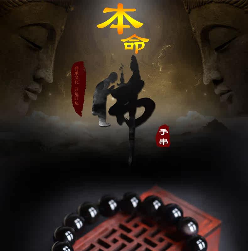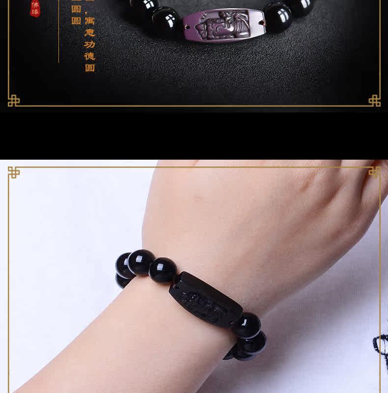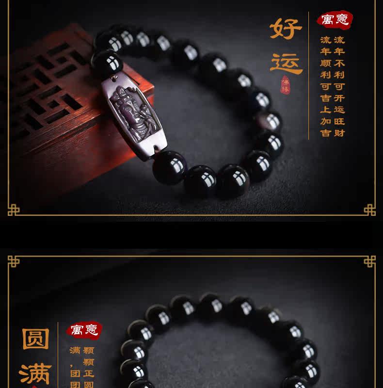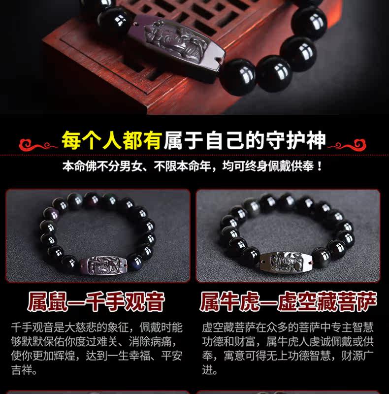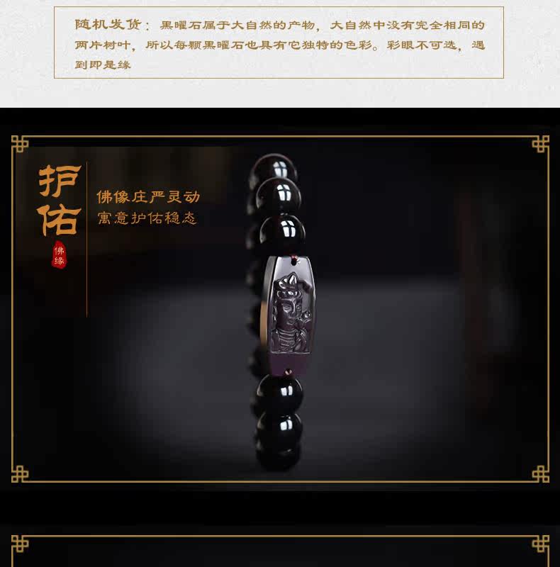 开光 天然黑曜石大势至菩萨手链 生肖属马本命佛守护神男女款手串