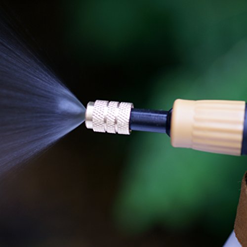 VARIABLE MIST TO STREAM: Multi-directional, brass nozzle adjusts from fine mist to stream. Helps to reach tight spots. Nozzle adjusts to a strong stream reaching over 20 feet. Perfect for high hanging plants and shrubs as well as for spraying pests from a safe distance.
