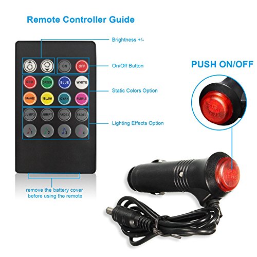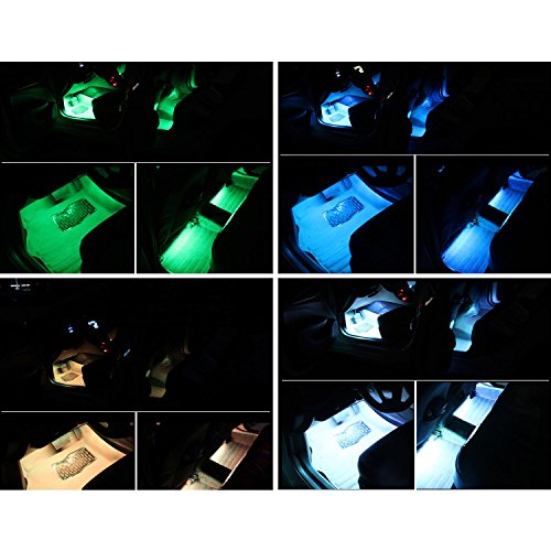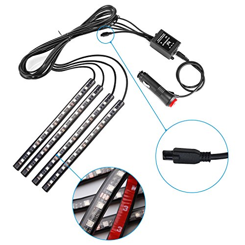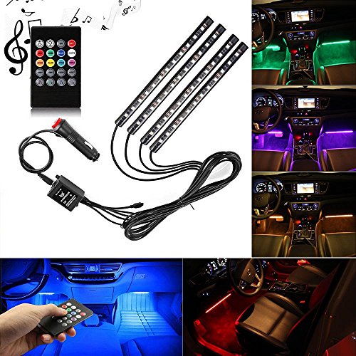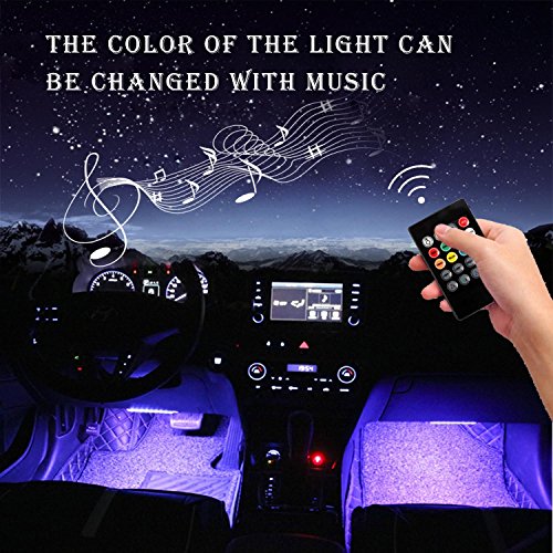 Car LED Strip Light , 4pcs 48 LED Multicolor Music Car Interior Light LED Under Dash Lighting Waterproof Glow Neon Decoration Lamp With Wireless Remote Control, Car Charger Included(DC 12V)
