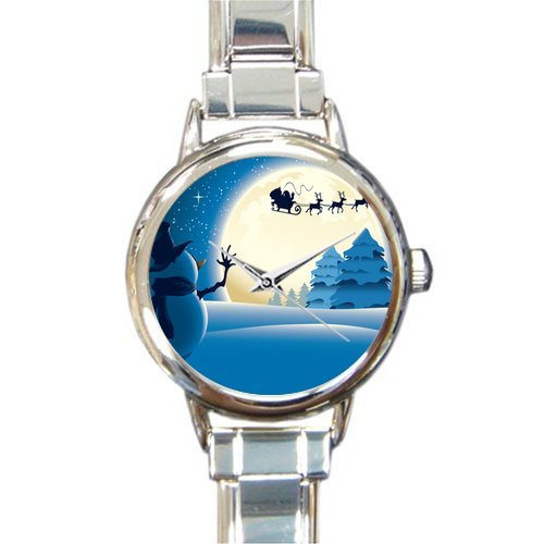 -. Title : Personalized Watch Cute Snowman and Father Christmas with Reindeer Round Italian Charm stainless steel Watch