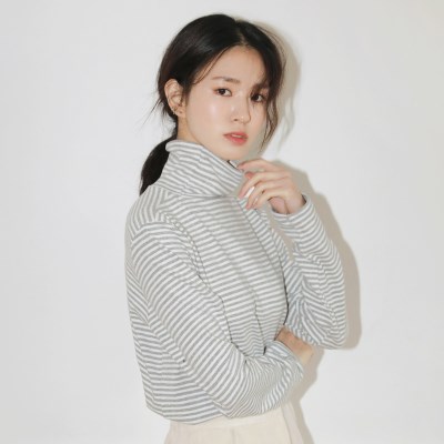 스트라이프 패턴이 캐주얼한 폴라 탑 입니다.