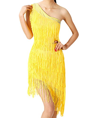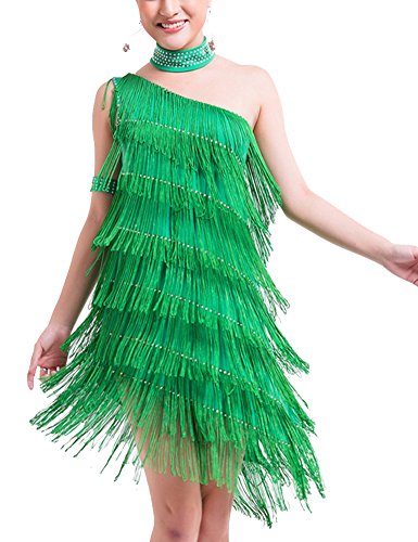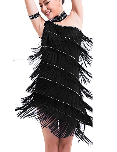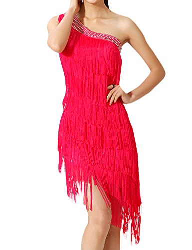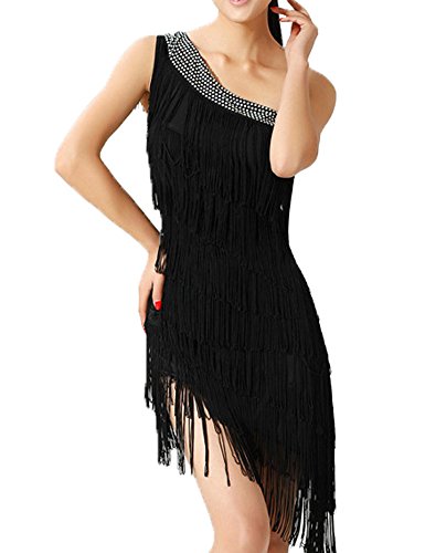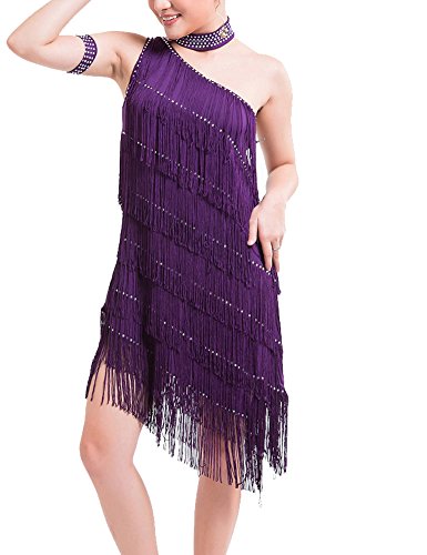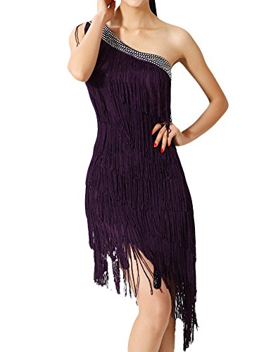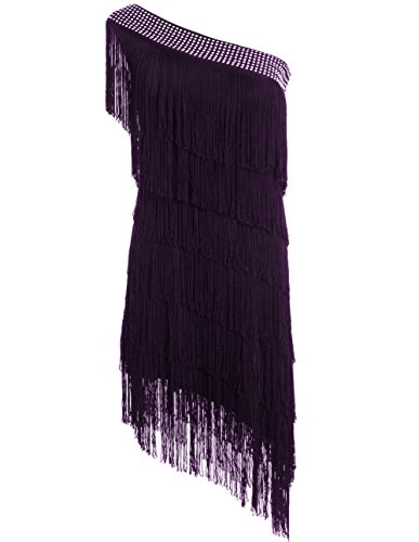 KAYAMIYA Women's One Shoulder Layers Fringe Flapper Gatsby Latin Dress Purple M