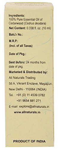 Cedarwood Essential Oil (Himalayan) 100% Pure Undiluted Therapeutic Grade for Aromatherapy, Massage, Skin, Hairfall & Romance by All Naturals (10 ml)