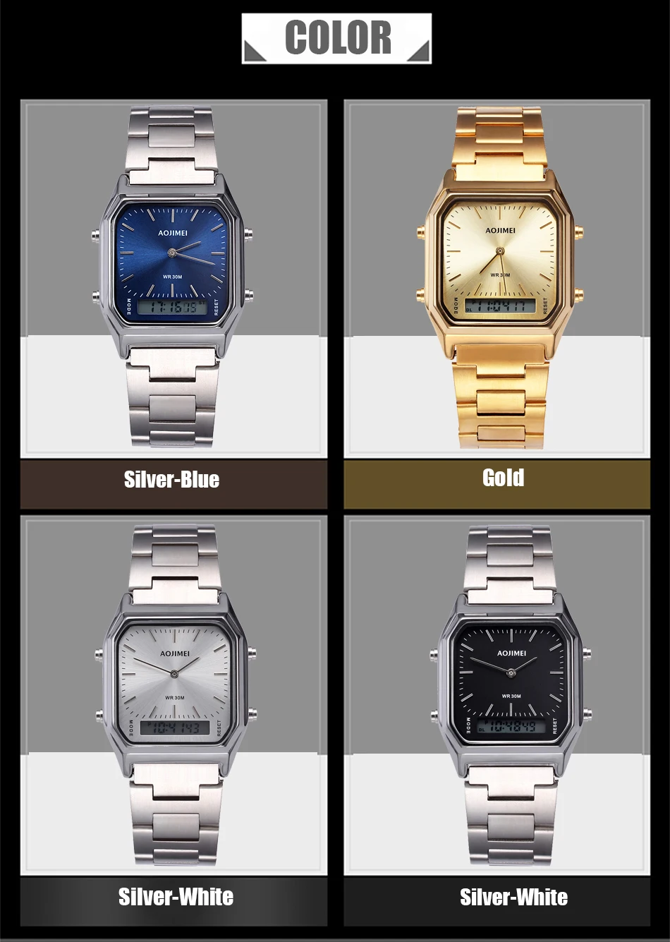 Color:Silver/Blue/Gold/White/Black
